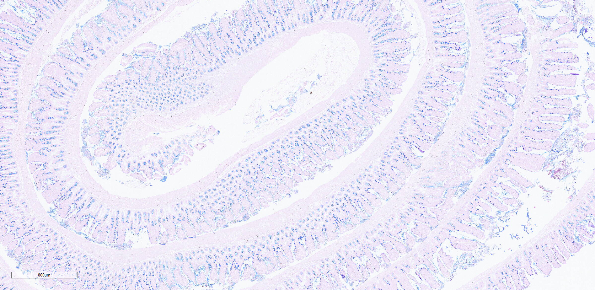 肠道 瑞士卷 阿利新蓝染色 示粘液成分