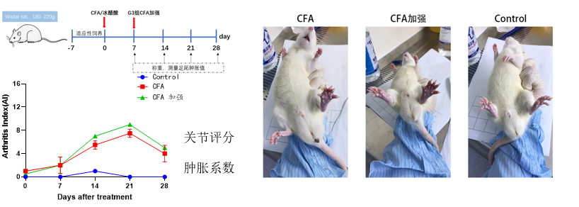 造模方式:佐剂性关节炎模型存在明显的细胞免疫异常,为一种典型的免疫性炎症模型。